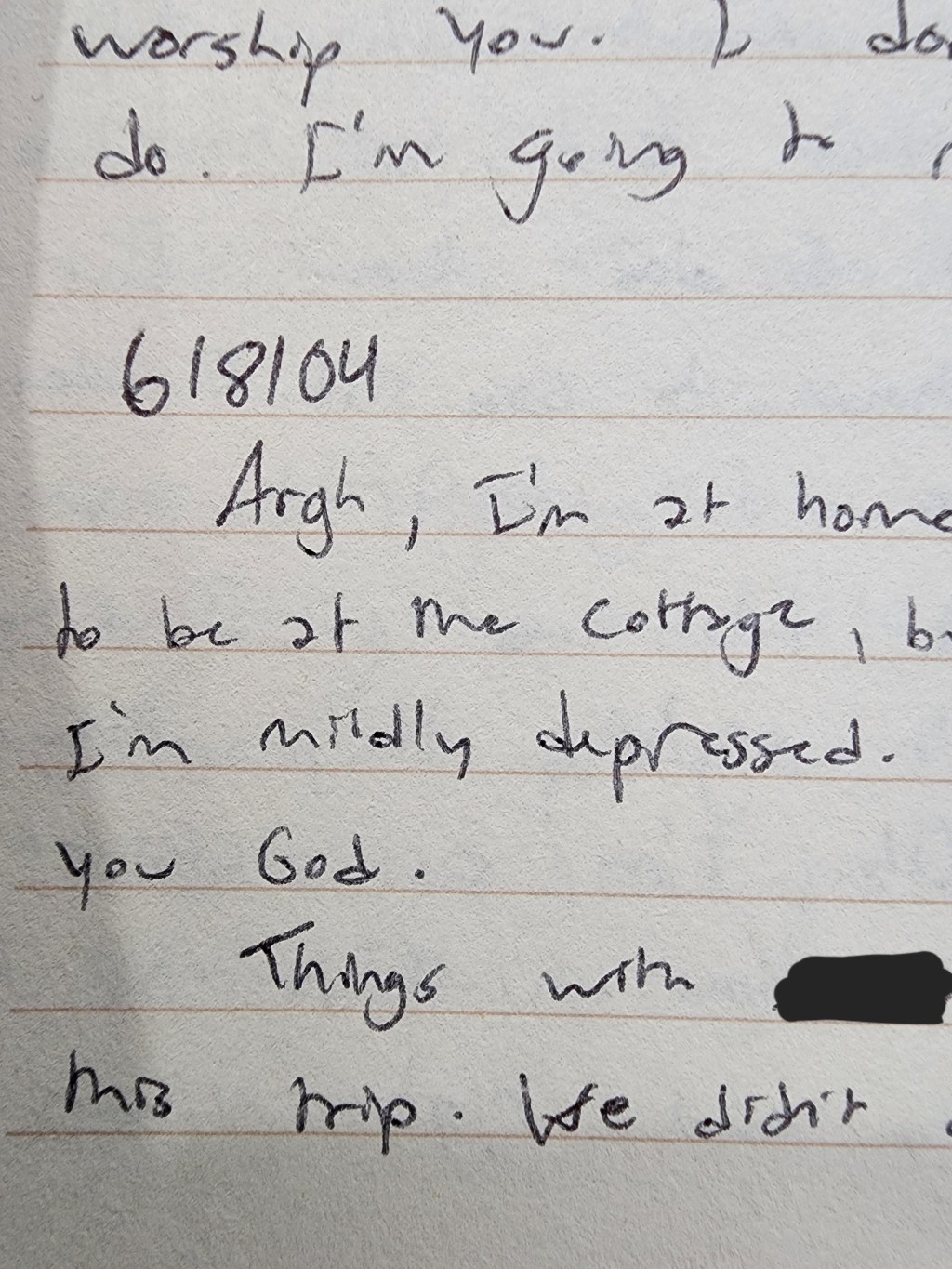 The talk I had with you before was mostly me angry with you and the meaninglessness of the trip. Redacted reassured me that it was a good trip and that he had a good time. You used him to touch me in that way. Sorry for being mad at you. Thank you for our talk, and thank you for using redacted to help me. Wow, that rarely happens. When I want my friends to be there for me, they turn me down. That’s usually because I’m depending on them and not you. I wasn’t expecting that sort of peace from the conversation with redacted, but you gave it to me. Thank you. I needed that. I needed that conversation a lot.