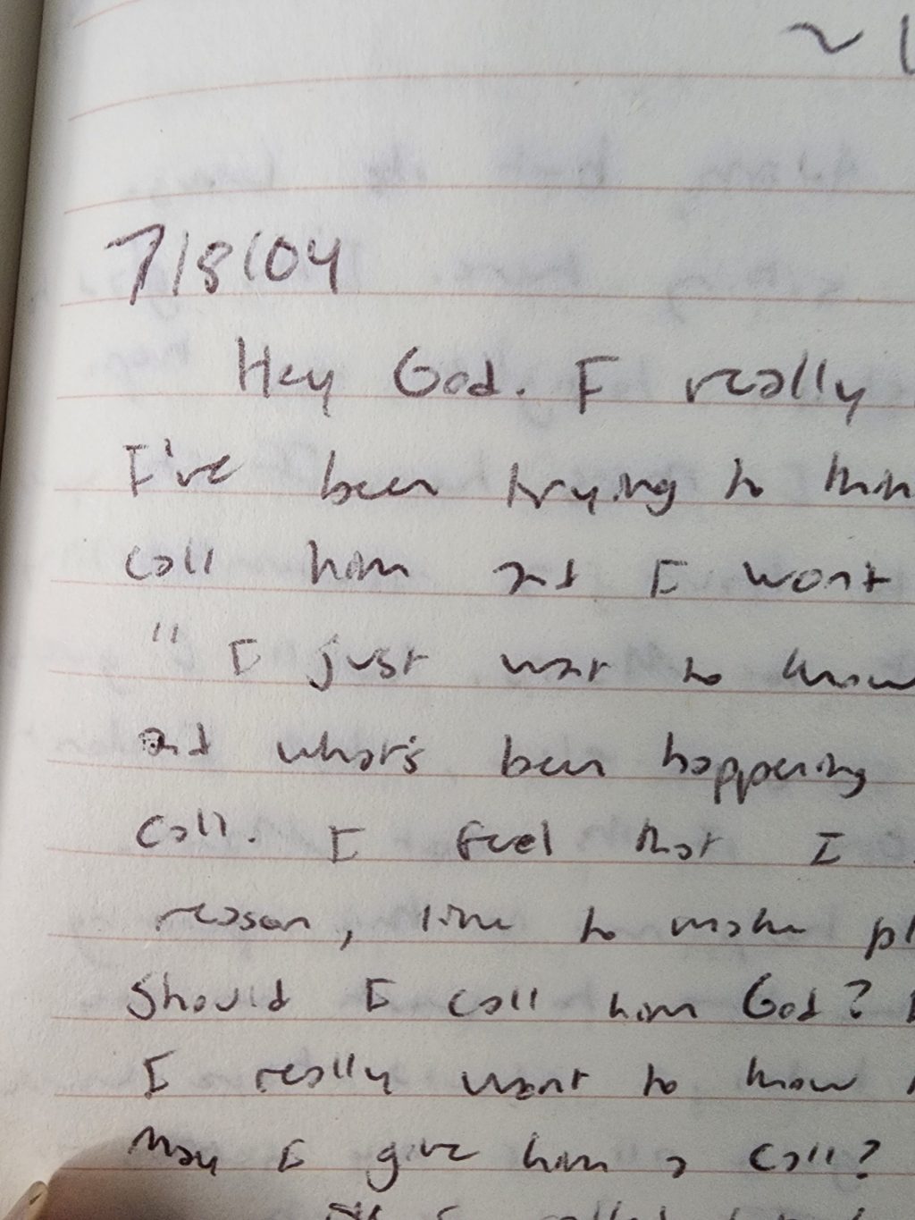 Hey God. I really miss redacted again. I’ve been trying to think of any excuse to call him and I won’t use the real reason “ I just want to know how you’ve been and what’s been happening in your life” call. I feel that I need to call for a reason, like to make a plan or something. Should I call him? I think I should. I really want to know how court went. May I give him a call?