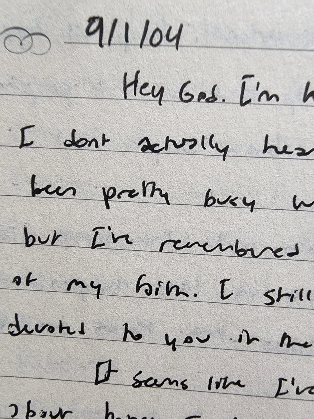 Hey God. I’m kind of sad. It seems like I don’t actually hear from you anymore. I’ve been pretty busy with the start of college, but I remember you. I haven’t let go of my faith. I still want to live fully devoted to you in the face of everything.